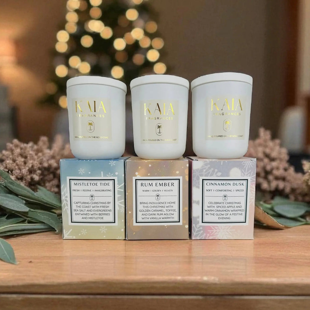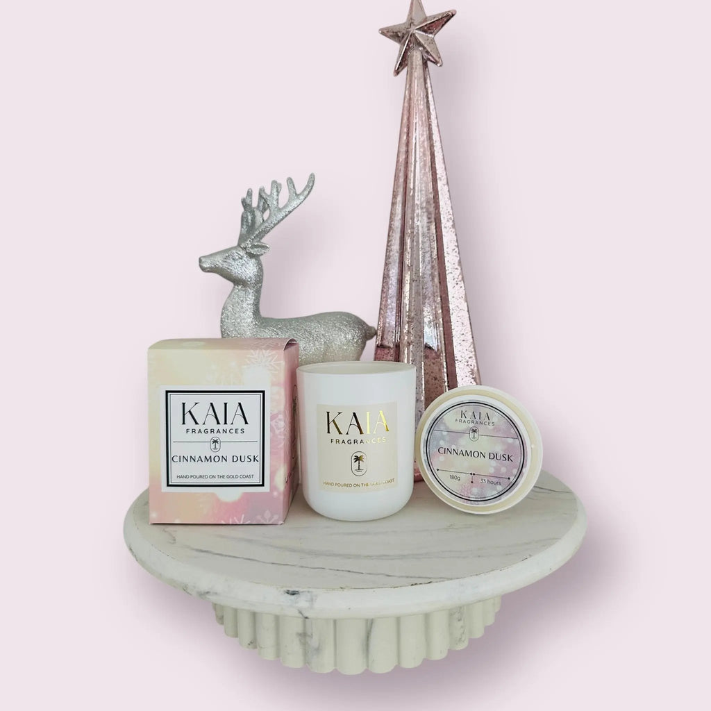Wrap your home in the comforting glow of Christmas with our Cinnamon Dusk Limited Edition Candle— a warm, spiced candle that captures the heart of the season. Hand-poured in small batches using superior blended coco soy wax, this 180g candle offers up to 33 hours of burn time, filling your space with the nostalgic aroma of spiced apple and cinnamon layered with festive warmth.